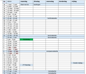 Wij hanteren voor al onze trajecten de vakanties van het PO.